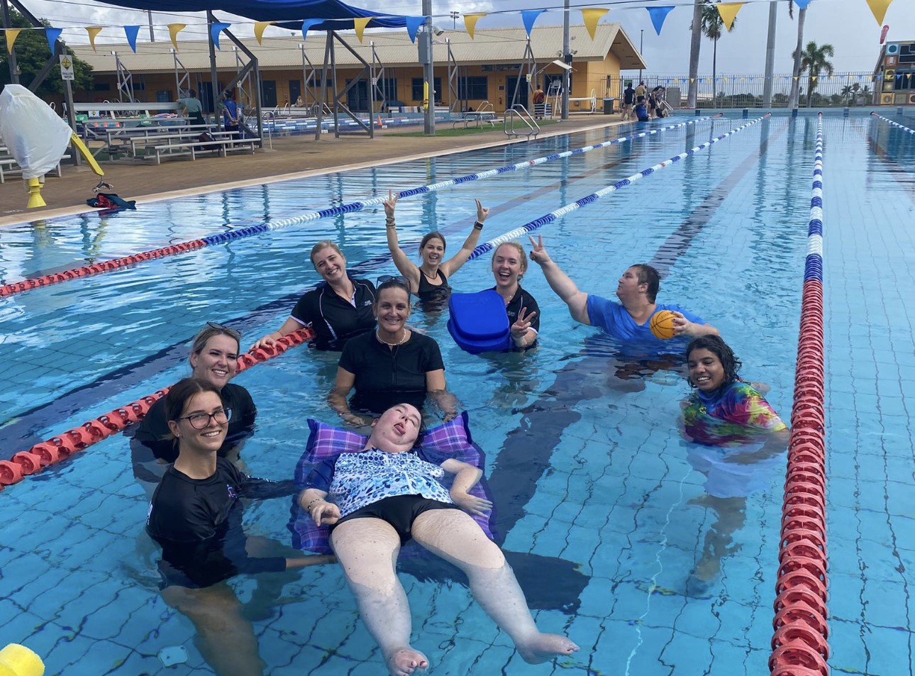 Erin has returned to the pool. With some hesitancy, Erin had braved the water after being out of the pool for some months. Hydrotherapy is extremely important for Erin and her muscle function, and this is clear to see once she is in the pool. Erin is an amazing floater and can move her whole body while in the float position.